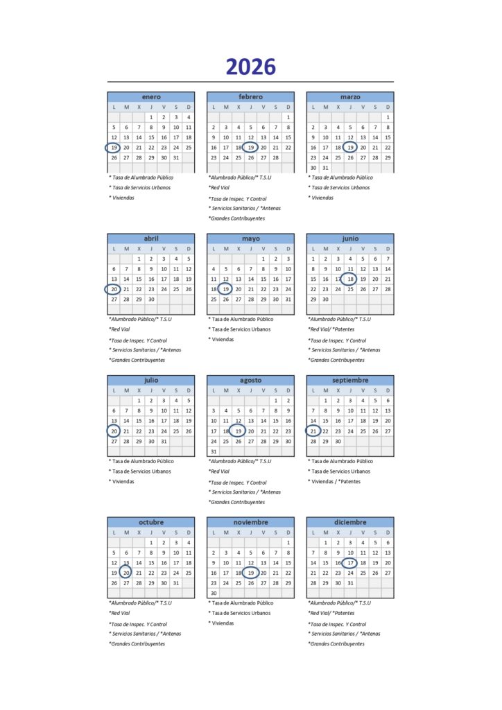 Calendario Impositivo 2026